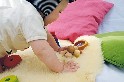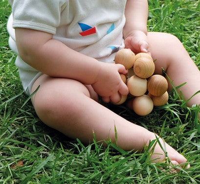 Hochet à serrer de billes de bois naturelles. Billes flexibles à manipuler tenues par un élastique, pour éveiller les sens des bébés qui apprennent à agripper et manipuler des objets. En s'entrechoquant, les billes font aussi un son agréable. Un cadeau parfait pour un shower!