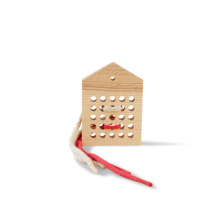 Jouet en bois à enfiler pour un apprentissage facile en jouant. Comment faire des lacets, des nœuds et préparer les mains à des compétences plus difficiles comme l'écriture.