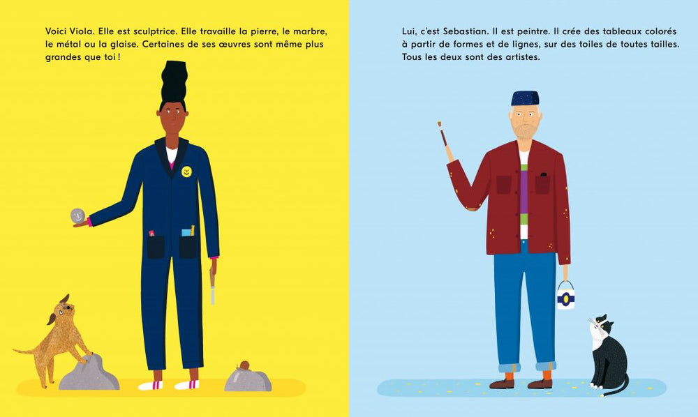 Depuis la création des œuvres de Sebastian, le peintre, et de Viola, la sculptrice, jusqu’à leur accrochage ou disposition à l’intérieur des vastes salles du musée, puis le vernissage, on découvre les différents métiers qui participent à l’aventure d’une exposition.