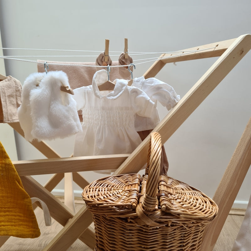 Un mignon panier de pique-nique à rabats pour emmener son pique-nique et ses poupées et peluches en balade!