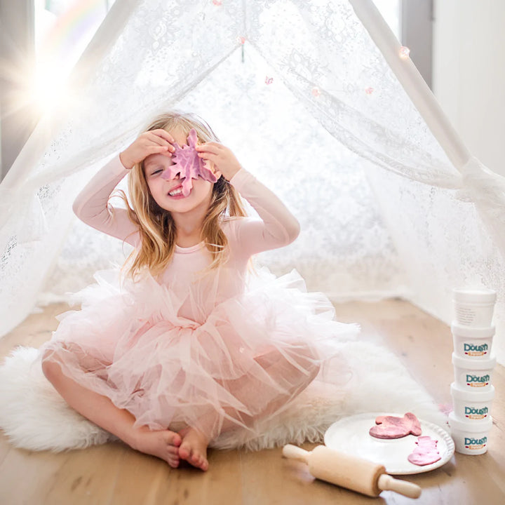En tant qu'éducatrice à la petite enfance, Natalie, la fondatrice de Dough Parlour, a passé plus de 10 ans à développer une pâte à modeler idéale pouvant stimuler les sens et les capacités motrices. Testée et approuvée par ses élèves et ses propres enfants, la recette est composée d'ingrédients 100% naturels, offrant des couleurs douces et des arômes recherchés ainsi qu'une texture inégalée.