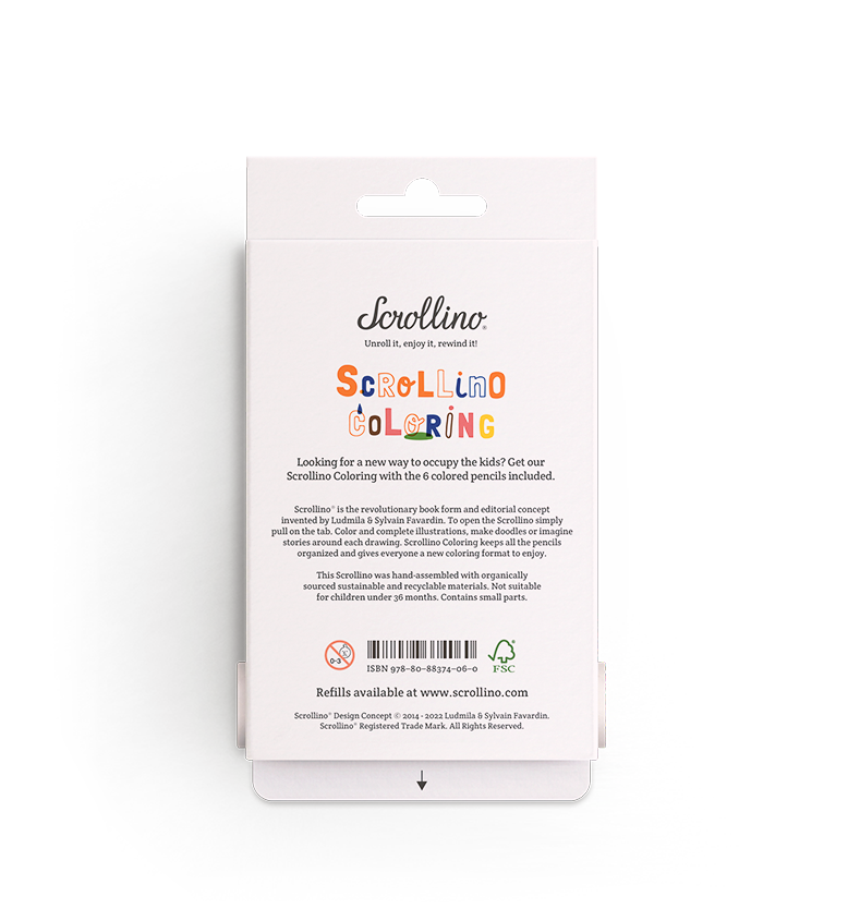 Scrollino® est le concept innovant du livre à rembobiner. Un simple crayon suffit pour profiter pleinement de votre Scrollino.