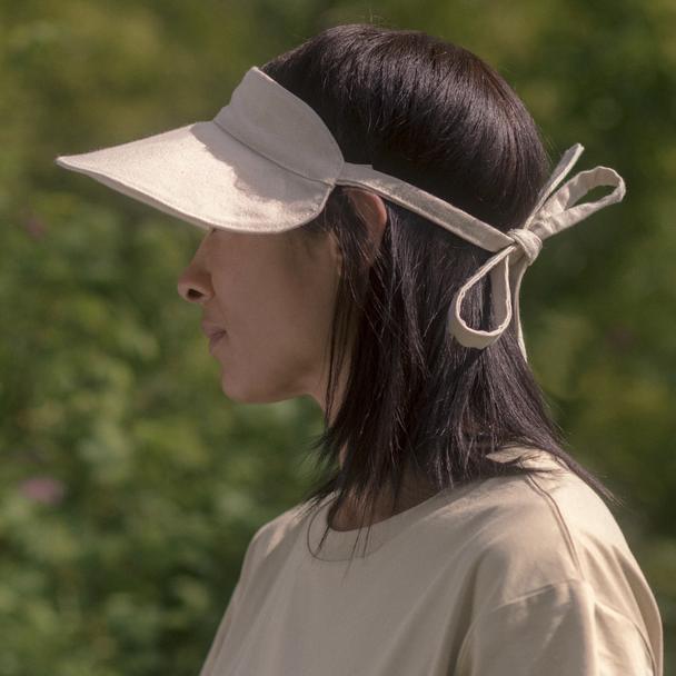Une visière de coton qui s'attache à l'aide de cordons, pour ajuster à la perfection et utiliser au fil des ans!