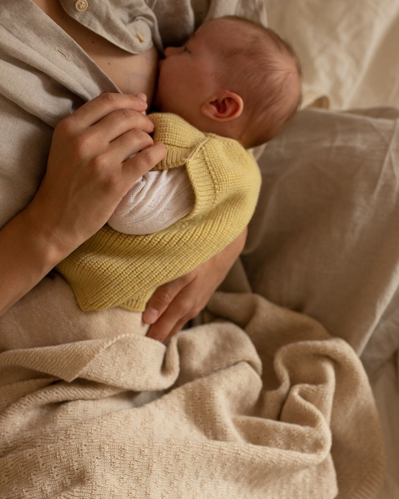 Maman et bébé avec Veste jaune pâle en laine mérinos