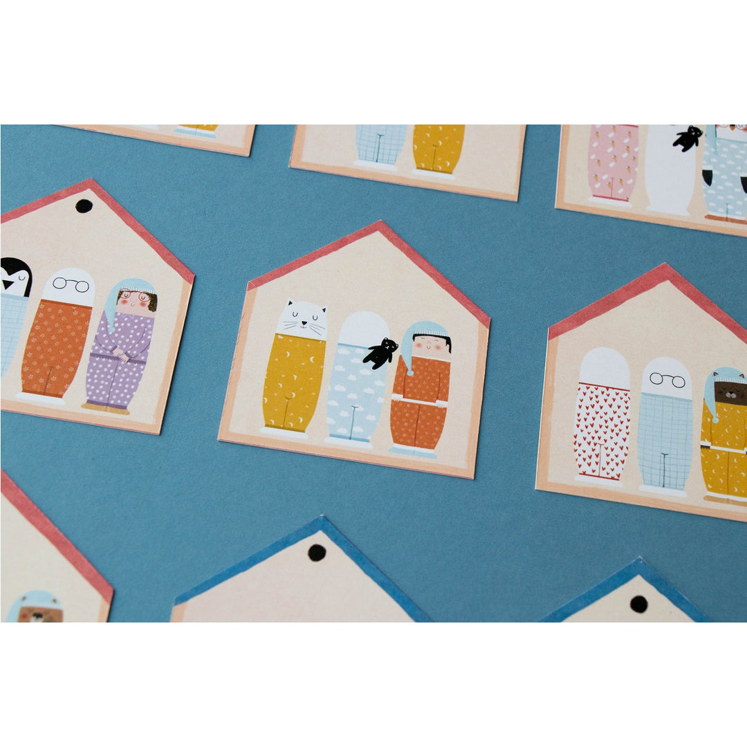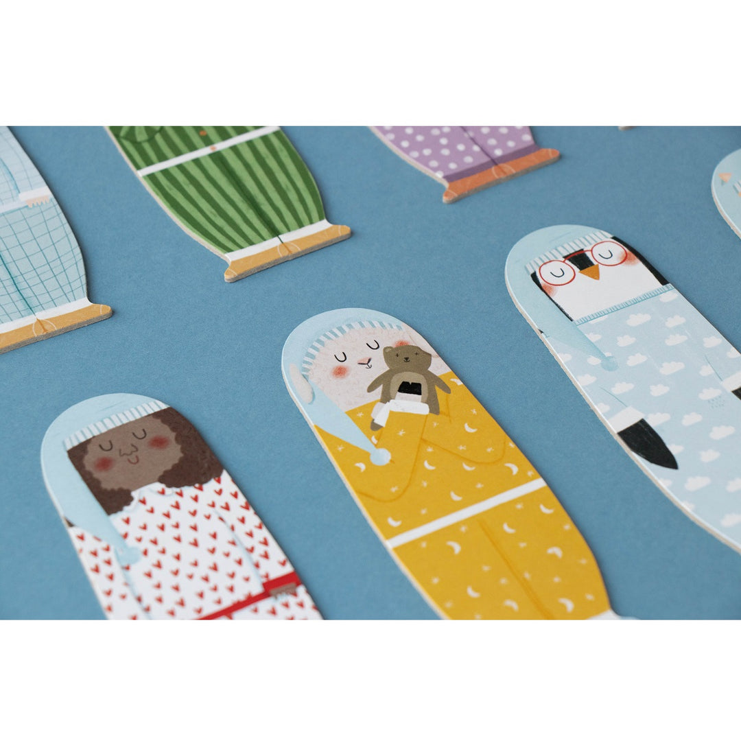 Un jeu avec 3 façons de jouer : mémoire, correspondance et déduction pour les jeunes enfants. Nos petits amis endormis sont prêts à aller se coucher. Qui porte le même pyjama ? Qui dort chez moi ? Où est le monstre sous le lit ? Bonne nuit !