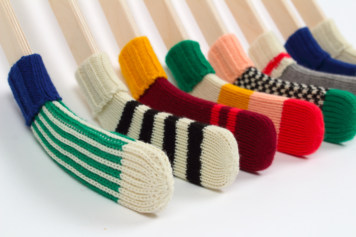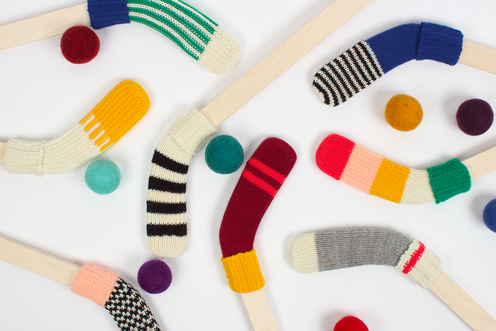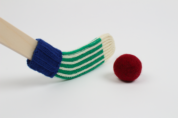 Dans un bas de laine coloré, avec une balle de feutre, ce bâton de hockey permet de jouer dans la maison ou dans la cour. Pour initier les bambins à notre sport national ou pour des joutes enlevantes, petits et grands auront beaucoup de plaisir à l’usage.