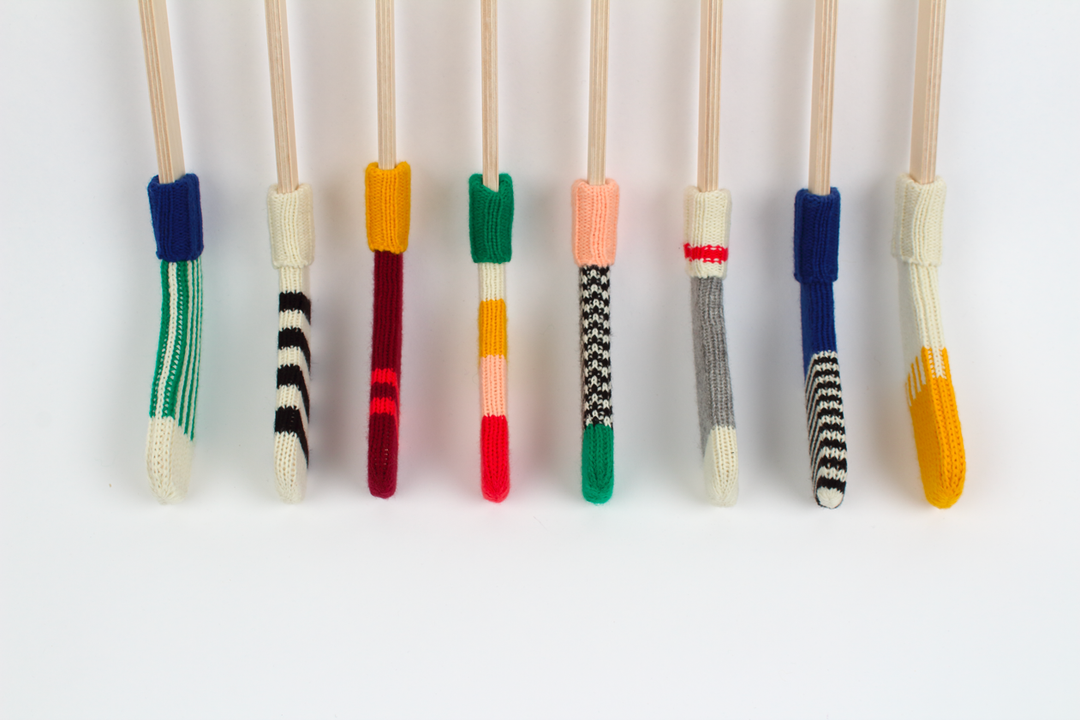 - chaque bâton est fait en contreplaqué de merisier russe, laine, feutre, fil de coton et/ou acrylique et/ou lin et cire d'abeille comestible