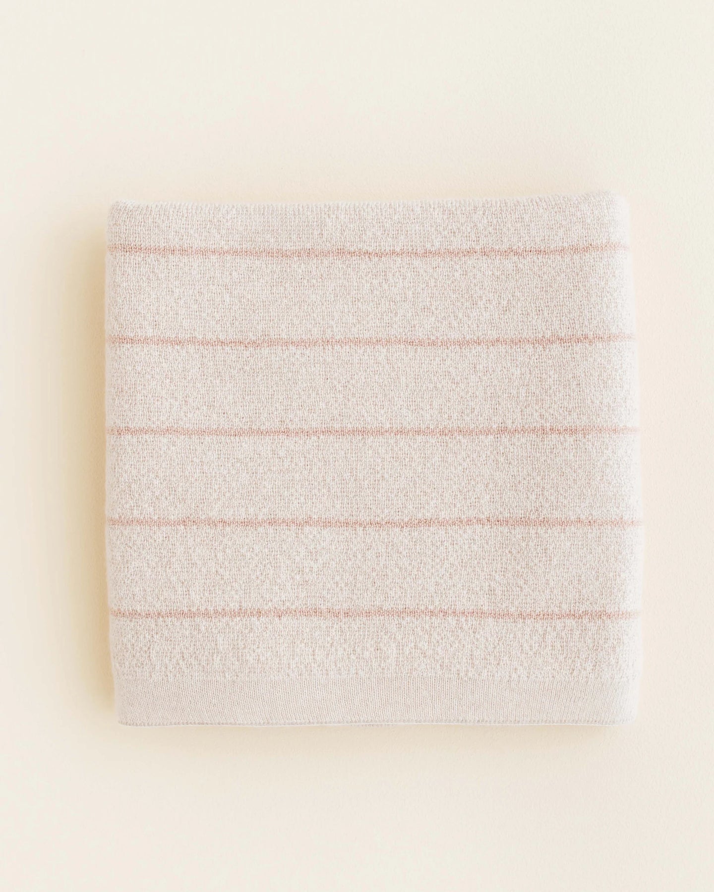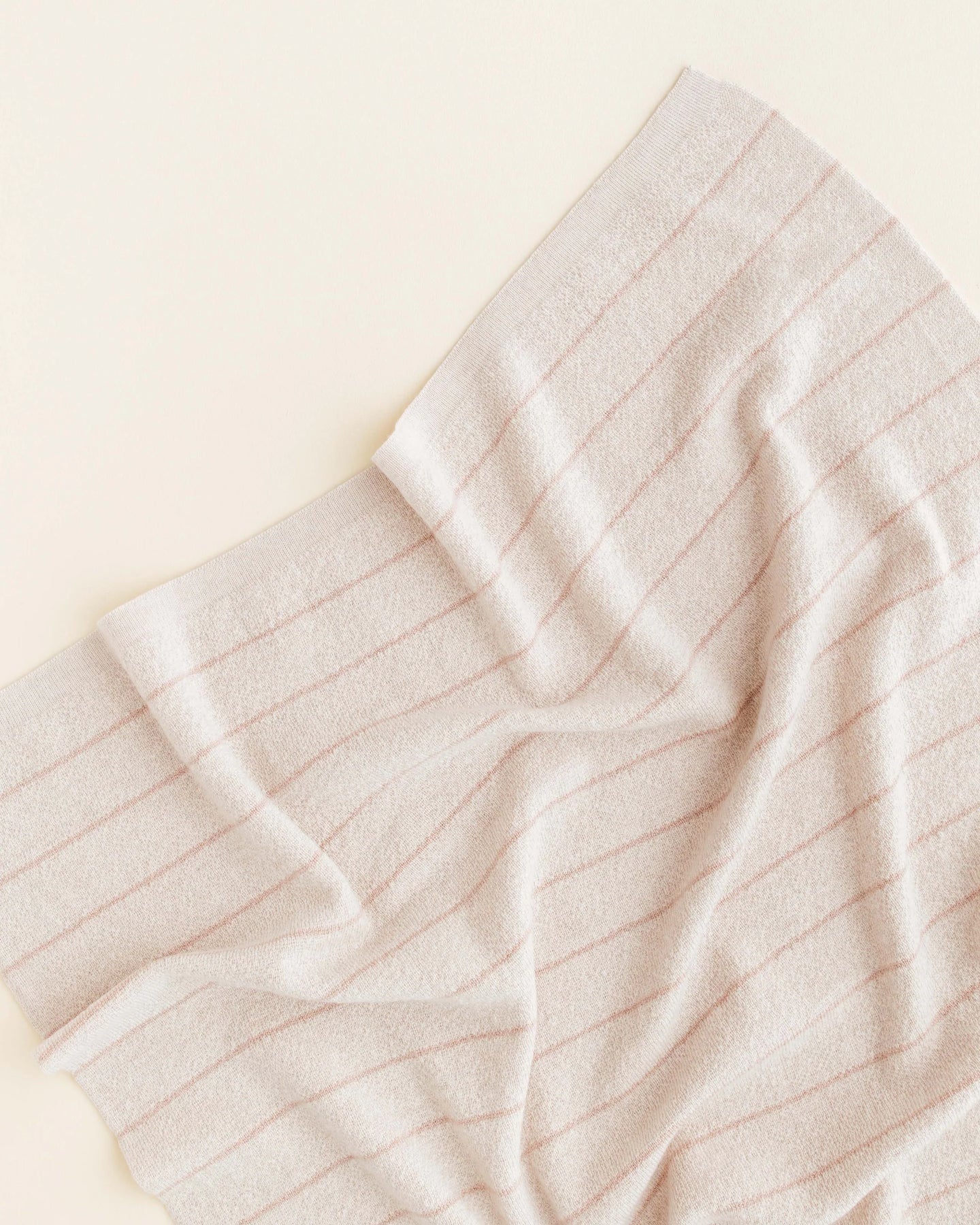 Cette couverture en jersey doux est d'épaisseur moyenne grâce à son tricot serré. L'une des faces présente un effet moelleux subtil et délicat, ajoutant une touche de confort supplémentaire.