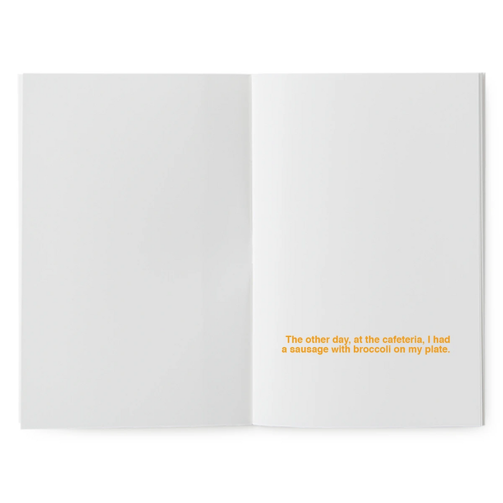 "the other day, at the cafeteria, I had a sausage with my brocoli on my plate..."