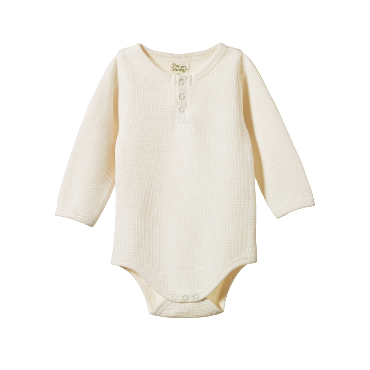 Waffle Henley Long Sleeve Bodysuit - Natural