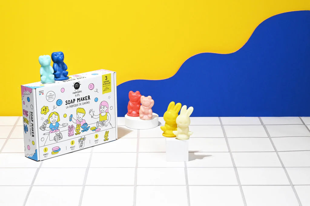 Avec la fabrique de savosn vous pouvez créer 3 savons très mignons, en forme de chat, de lapin et de crocodile. Comment cela fonctionne-t-il ? Facile à savonner : fondre, mouler, démouler.