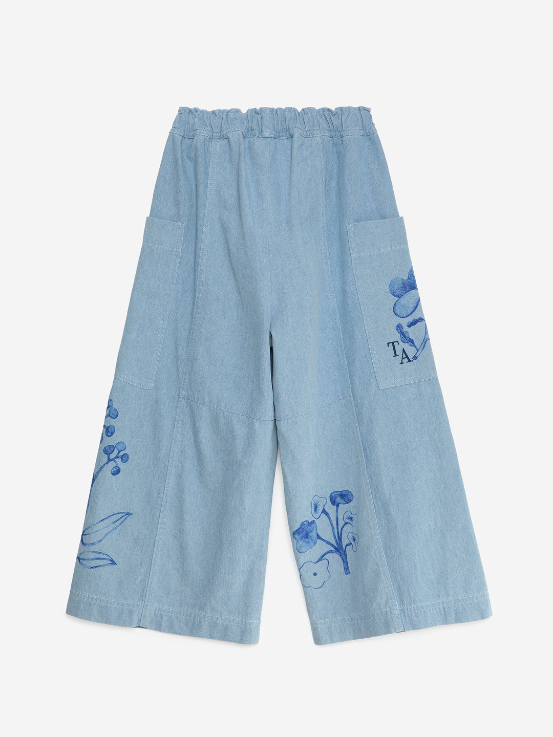 Le pantalon Herbarium est composé à 100 % de coton et présente une impression faite à la main par un artiste qui met en valeur de belles références d'herbiers. Ce pantalon en denim léger est doté d'une ceinture élastique et de poches latérales plaquées. Il a une coupe décontractée.